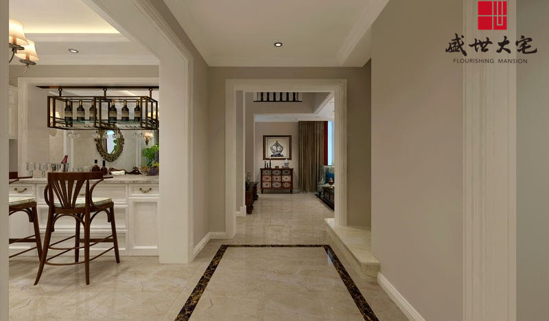 2、通過與業(yè)主的交談了解,女主人很注重生活品味,因此采用中西廚結(jié)合的方式,并將餐廳進(jìn)行了拆改,實(shí)現(xiàn)餐廳與西廚的互通,增強(qiáng)空間互動(dòng)性,使午后陽光直接映射到廚房以及過廊,晚風(fēng)輕拂,營造出一種無拘束,自由自在的意境。