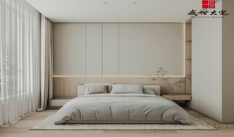 次臥則以素雅為底,創(chuàng)造細(xì)膩的情境,背景以干練的線條實(shí)現(xiàn)對(duì)比、分割。軟裝亦在多元的搭配中展現(xiàn)出節(jié)奏感,以簡(jiǎn)約的筆觸來(lái)呈彼此的呼應(yīng)關(guān)系。
