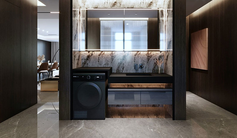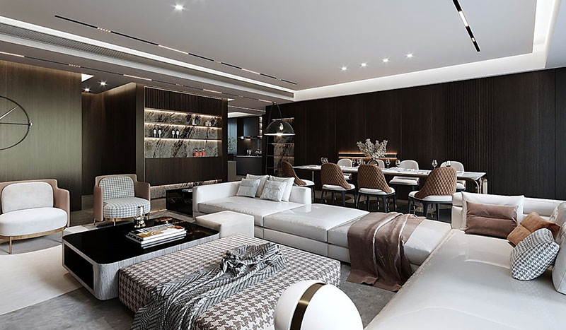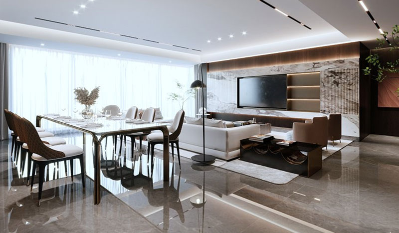 輕奢風(fēng)格,大多以簡約的設(shè)計為基底,采用自帶奢華氣質(zhì)的大理石、金屬、玻璃、鏡面等元素,為空間締造出豐富的層次感,從而彰顯了一種高品質(zhì)的生活格調(diào)。