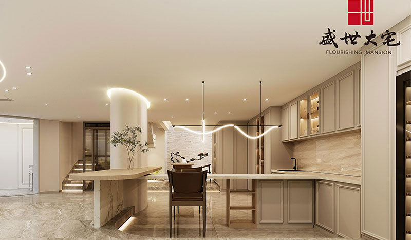 本案運(yùn)用最少的設(shè)計(jì)語(yǔ)言,表達(dá)出最深的設(shè)計(jì)內(nèi)涵。唯美的空間與自然景觀相融合,突破傳統(tǒng)設(shè)計(jì)又具有藝術(shù)性,運(yùn)用線條的曲線柔美展現(xiàn)設(shè)計(jì)與人之間的情感關(guān)聯(lián)。刪繁就簡(jiǎn),去偽存真,以色彩的高度凝練和造型的極度簡(jiǎn)潔,在滿足功能需要的前提下,將空間、人及物進(jìn)行合理精致的組合,用最洗練的筆觸,描繪出最豐富動(dòng)人的空間效果。營(yíng)造出設(shè)計(jì)與藝術(shù)的最高境界。