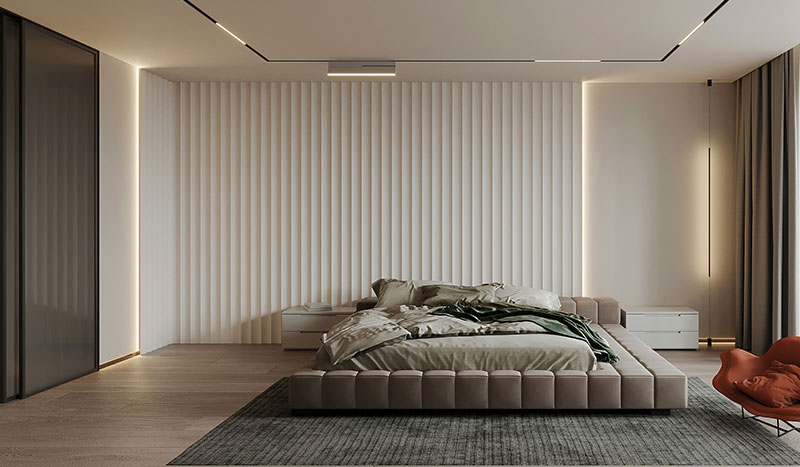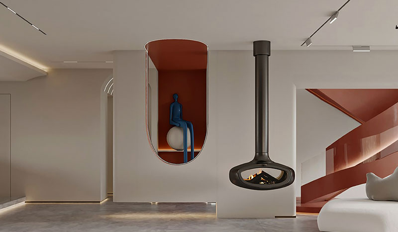 設(shè)計說明:本案以米色為基調(diào)來構(gòu)建起愛意溫暖的空間風(fēng)格 我們選用懸浮式壁爐,黑色、紅色與空間整體暖色的氛圍有著和諧的碰撞??蛷d以乳白色基底調(diào)代表月光來營造出一個溫暖居家環(huán)境,希望給居住者帶來一種置身大自然中的悠然自得。閑暇的午后可以窩在沙發(fā)里享受美好的下午時光,可謂是身未動心已遠(yuǎn)。臥室的設(shè)計極具溫馨感,讓居住者能夠在這里安心入眠。床品賦予了整體的舒適度。家的歸屬感是目之所及的溫暖,是用自然之色慢調(diào)自然而然的生活,不是流于表面的美,而是深入內(nèi)心里的精致??占排c靈性的結(jié)合,并心存愛意的溫暖。