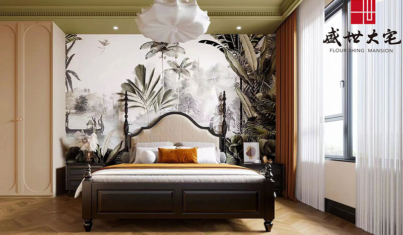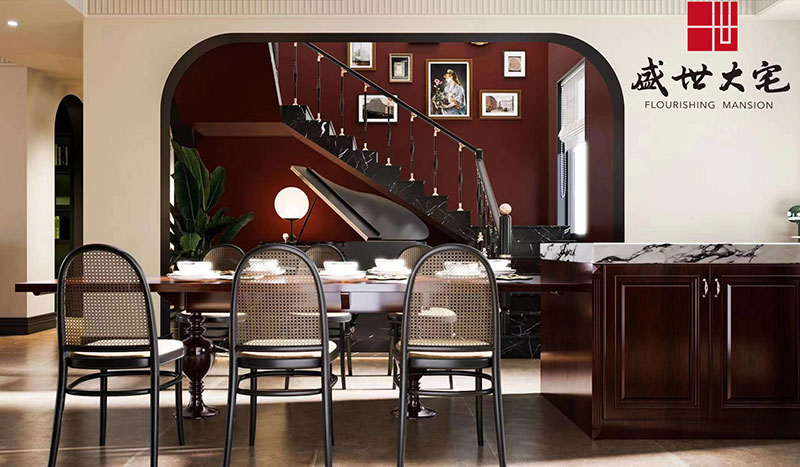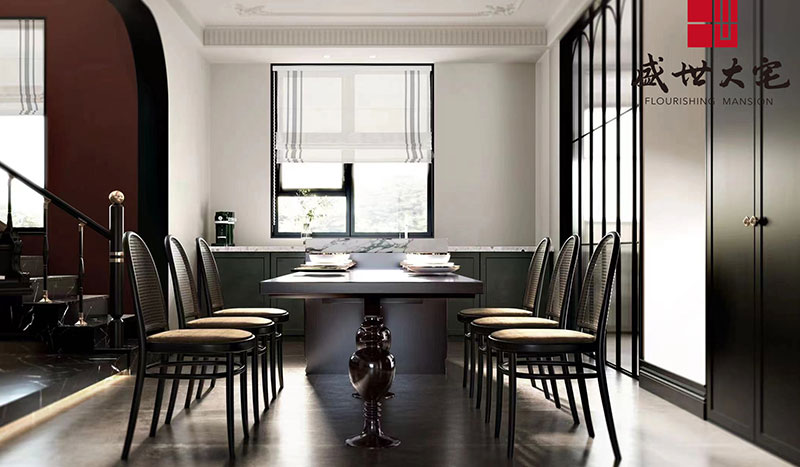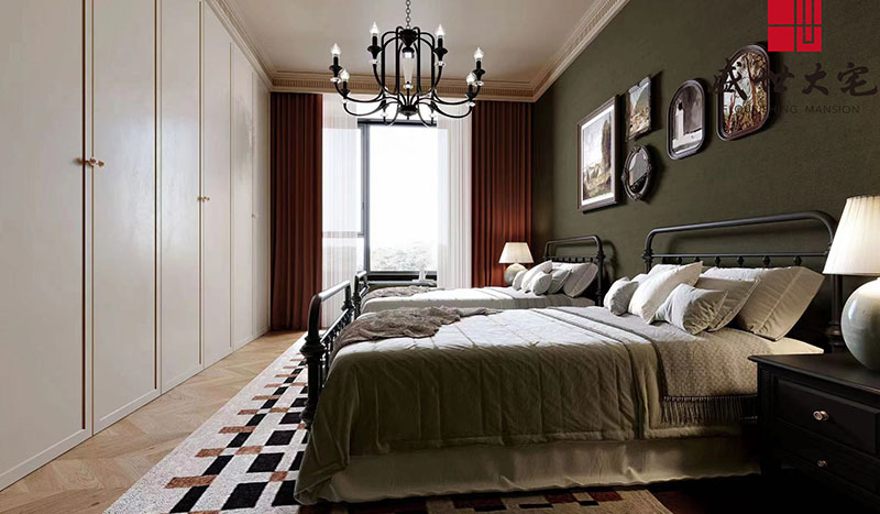 設(shè)計說明:懷舊是一種心情,復(fù)古是一種元素,新舊結(jié)合也可以是一種藝術(shù),是一種對歷史生活的美好沉淀和再續(xù)。在布局上重點突出軸線的對稱,色調(diào)以米咖+黑為主,復(fù)古紅、復(fù)古綠點綴,彰顯優(yōu)雅浪漫的情調(diào),細(xì)節(jié)方面則運(yùn)用少量雕藝,線條勾勒出自然舒適的雅致空間??臻g的氛圍感由軟裝來完成,具有歲月沉淀的韻味的深色系家居,遠(yuǎn)遠(yuǎn)就感受到他們的工藝與材質(zhì)的故事感。搭配藝術(shù)美感的復(fù)古家具裝飾,提升空間的質(zhì)感同時也注入了古典主義的美感,如同走進(jìn)十九世紀(jì)的電影。