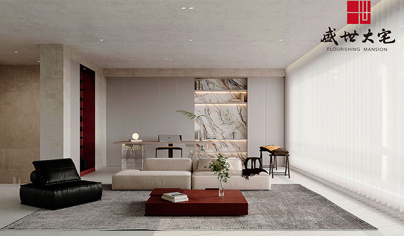 讓居住者再細膩的浸潤中,傾聽內(nèi)心深處的出動。以溫潤的高級灰貫穿其中,又深諳克制平衡,讓一切和諧共融,同時引入建筑設計手法,不同材質(zhì)穿插組合,色彩及明暗對比。