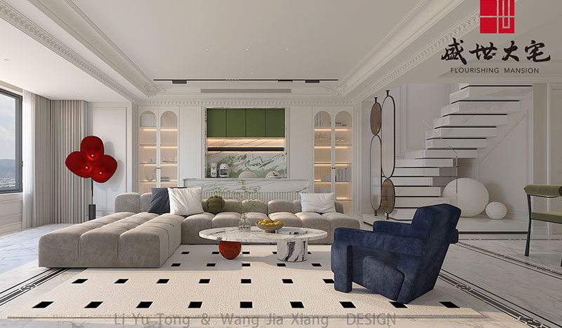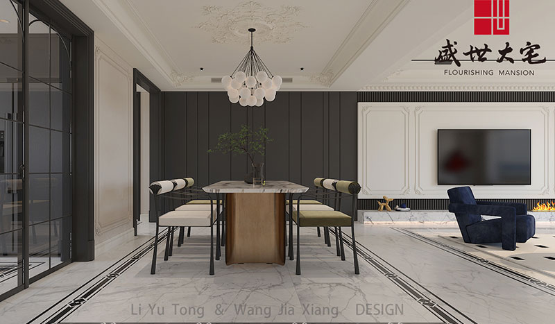 設(shè)計(jì)通過(guò)協(xié)調(diào)的方式建立空間與人之間的溝通紐帶。空間所表達(dá)的意義,不僅僅是安頓身心的棲居之所,還是讓我們尋找自我本真情感與精神認(rèn)同的場(chǎng)域。本案采用裝飾主義設(shè)計(jì)手法,主要特點(diǎn)是用現(xiàn)代的手法和材質(zhì)還原古典的氣質(zhì),具備了古典與現(xiàn)代的雙重審美效果,完美的結(jié)合也讓人們?cè)谙硎芪镔|(zhì)文明的同時(shí)得到精神上的提升。整體多以白墻、木材、理石、線條為空間的整體基調(diào),在良好的采光下?tīng)I(yíng)造出透亮、潔凈的視覺(jué)感受。