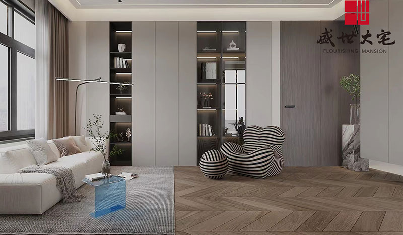 本案采用意式極簡(jiǎn)風(fēng)格,同時(shí)對(duì)燈光要求比較高,用了當(dāng)下流行的無(wú)主燈。