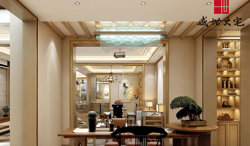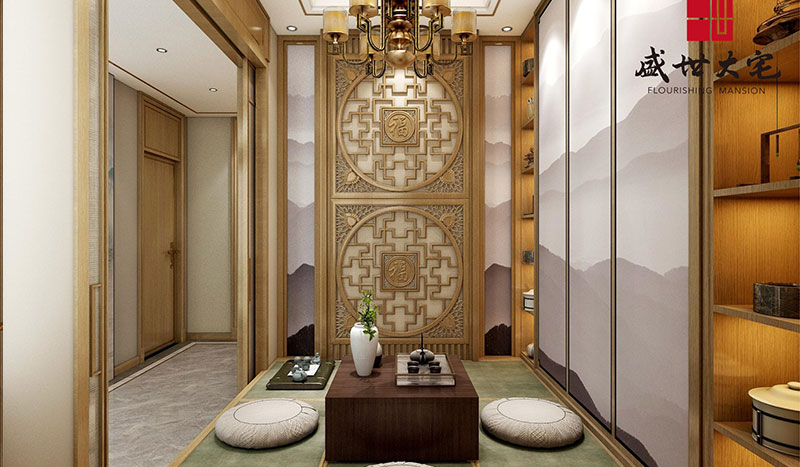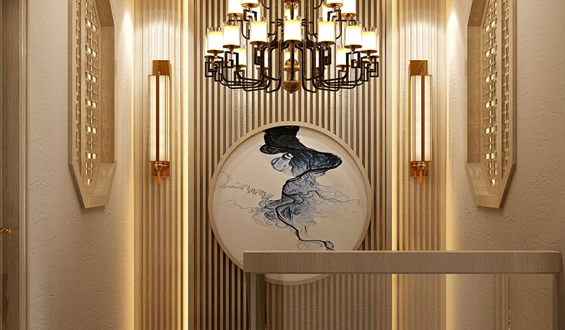 二層將原本挑空處增建新中式風(fēng)格墻面,看似簡單,卻暗藏雅韻質(zhì)感的設(shè)計。