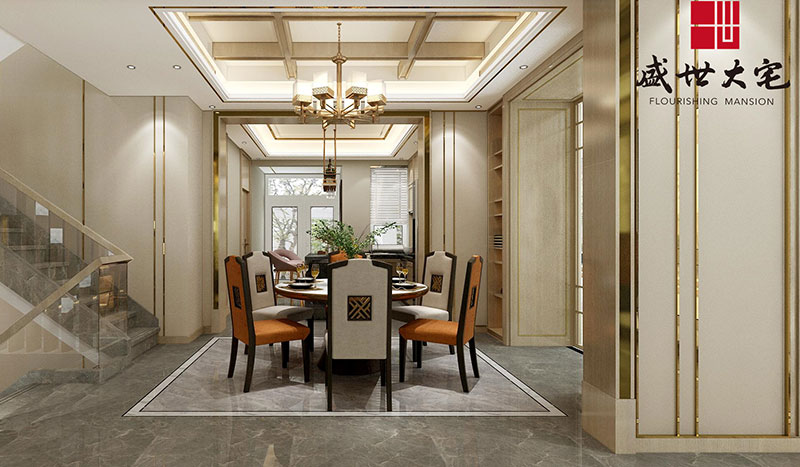 一層空間利用外建的方式,打造出通透寬敞的門廳。采用新中式和意式簡約相結(jié)合的方式,并將房屋進(jìn)行了拆改,增強空間互動性,使空間具有大氣簡約的意境。