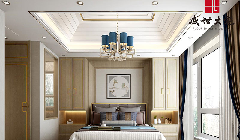 這套設(shè)計里,既有端莊的方,又有大氣的圓,正如客廳里方形的茶幾和圓形的裝飾窗,以及圓弧的方形天花,剛?cè)岵?jì),舒適又和諧。