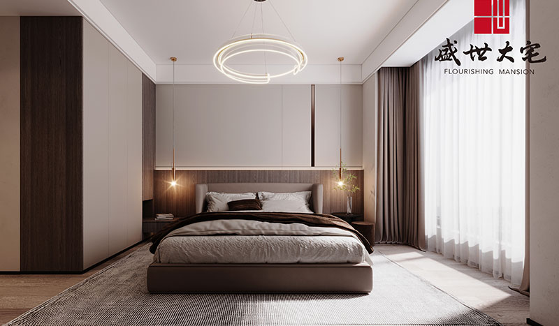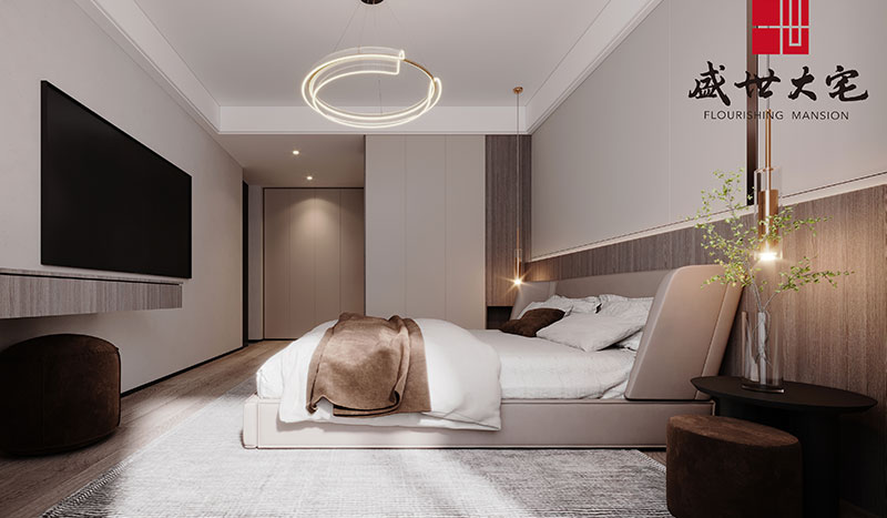 主臥作為忙碌的夫妻二人的放松休憩空間,延續(xù)了客廳的時(shí)尚感,柔和的色彩、靜雅的線條、安靜不張揚(yáng),低調(diào)而不失奢侈。整個(gè)空間在軟裝上從地毯、床品、燈飾等軟裝的相互點(diǎn)綴中,展現(xiàn)出空間的溫婉與細(xì)膩,臨窗而臥,逃離庸常。