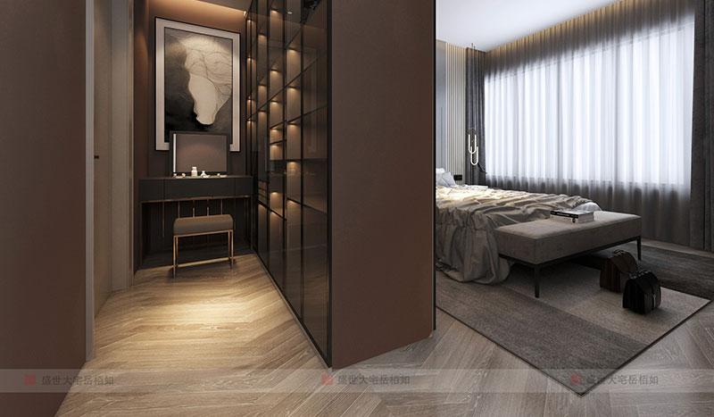 負(fù)一層是主人的精神領(lǐng)地和獨(dú)立世界,遵循心靈的感受,將根植內(nèi)心的對(duì)藝術(shù)時(shí)尚的追求投射在空間中,通過虛實(shí)輕重,整個(gè)空間讓人產(chǎn)生一種時(shí)空流轉(zhuǎn)的愉悅感。
