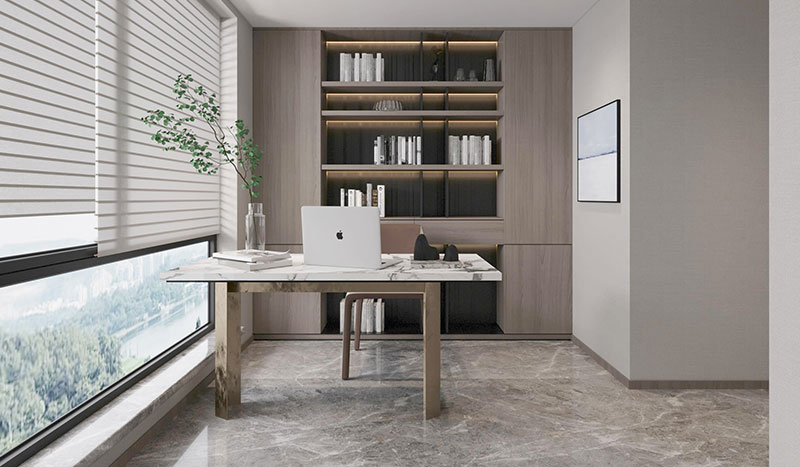 書房灰色為主,溫和寂靜,打造思考的靜謐空間
